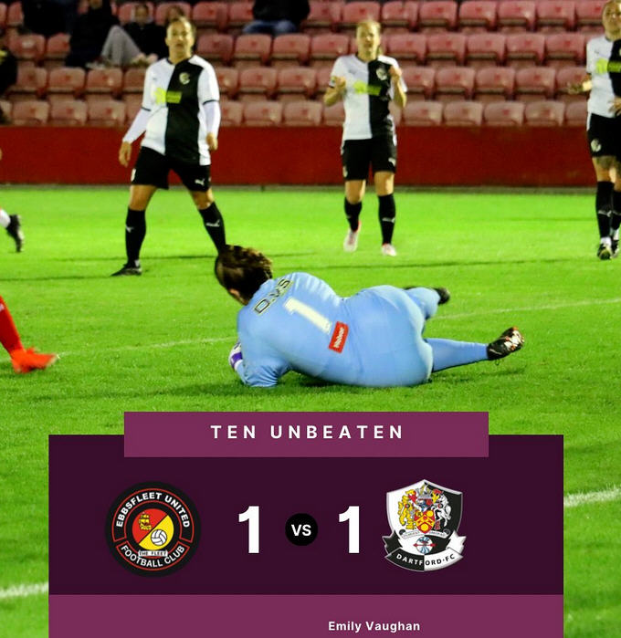 When reporting on Sunday’s match with Sutton, I mentioned that Darts converted seven of their ten chances. This evening Ebbsfleet could only convert their eight or so chances into a solitary goal. Much praise must be heaped onto Jade who probably played one the best performances of her career, certainly true in a Dartford shirt that’s for sure.
