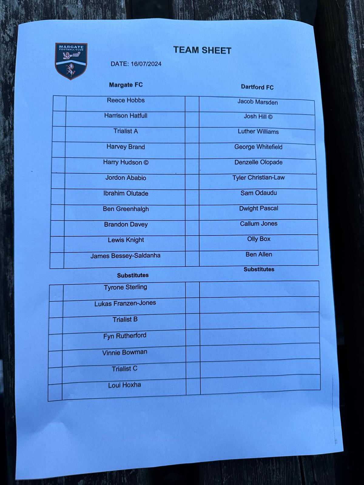 Re: Pre season friendly Margate v Dartford Tue 16 Jul 2024