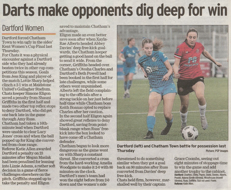 Well done to Dartford FC Women (and in part to Chatham Town too) in providing surely one of the best Kent Women's Cup finals ever.