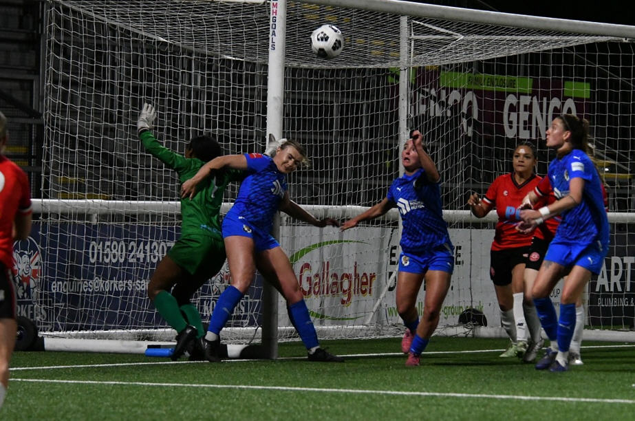 Chatham's opening goal in the 16th minute was an unsavoury one. The ball pinning around like a pinball machine in the penalty area ended with a goal Jade Charlton couldn't palm away due to her arm being yanked down like a one armed bandit.