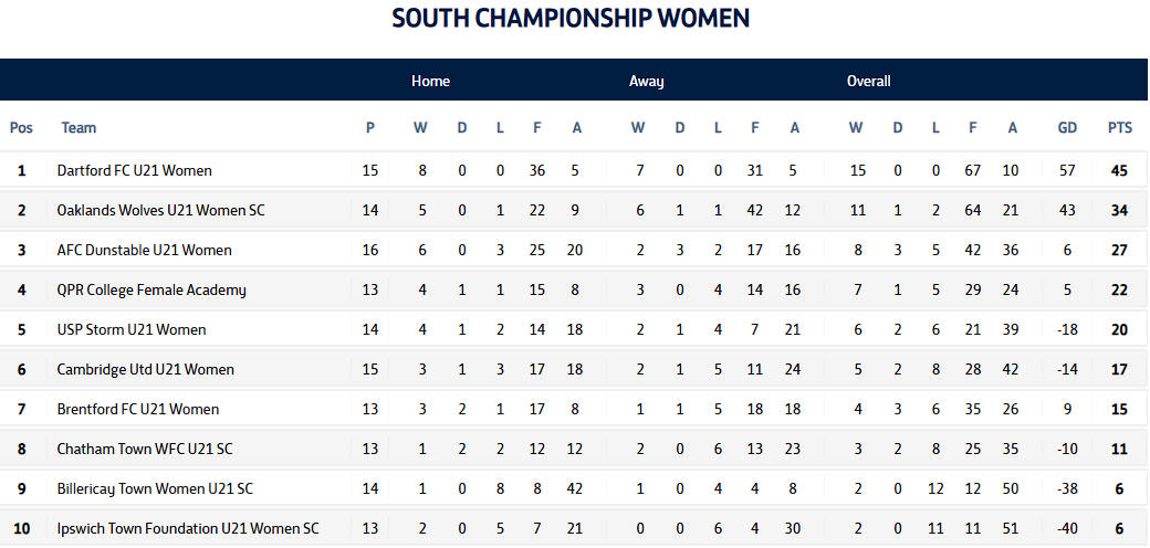 NATIONAL YOUTH LEAGUE WOMEN'S U21s SOUTH CHAMPIONSHIP - Wednesday 11th March 2026.