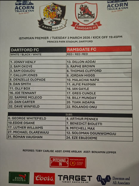 Re: Dartford v Ramsgate Tue 3 Mar 2026