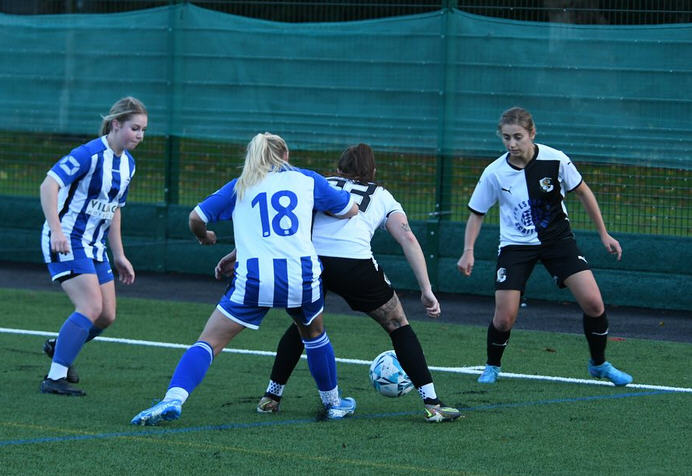 The build up to Darts’ quick equaliser started with a throw-in from Charlie Torry who received it back from Paris Smith who placed an accurate pass to Shauni Griffiths on the edge of the penalty area where she worked her magic; took the ball, turned nicely, left defenders for dead and walloped home Darts’ equaliser in the 4th minute.