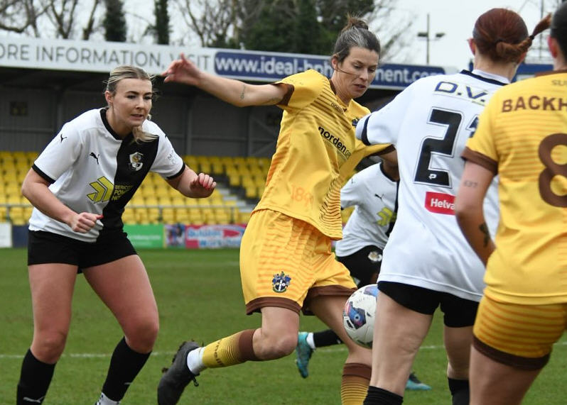 Shauni Griffiths gets behind the Sutton defence, the cross finds Molly Hawkins and her effort on goal is cleared off the line. Darts so close to the third goal of the afternoon.