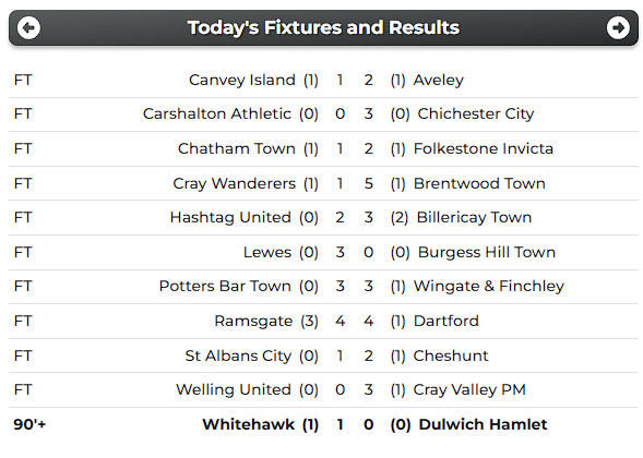 - x Yellow in FA Cup, but not included in National League fixtures.