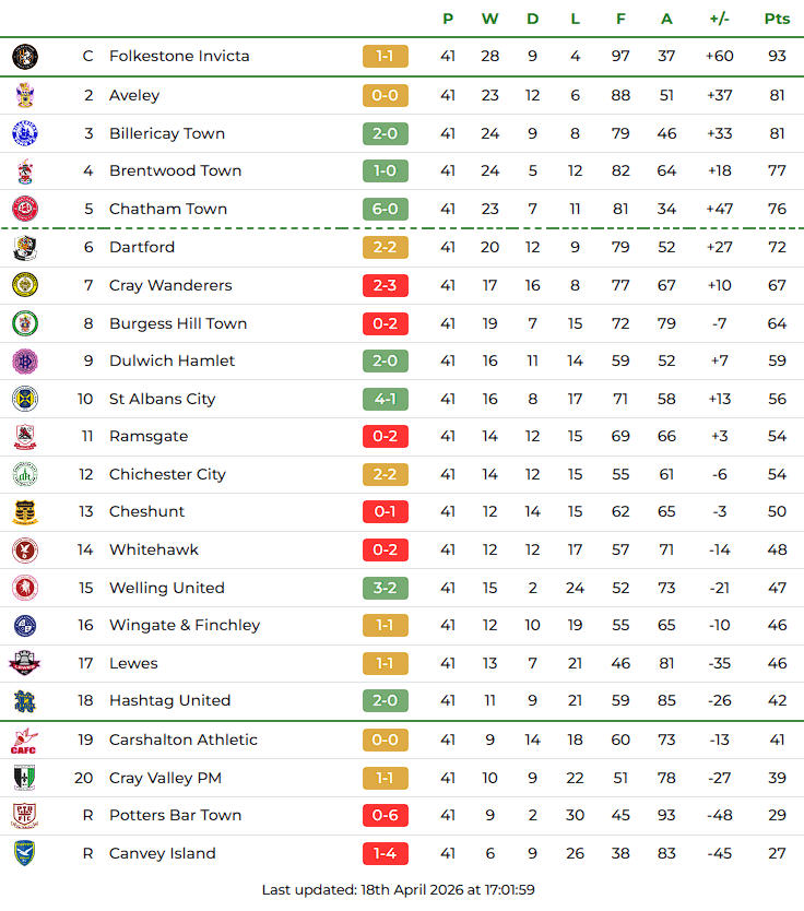 Dartford v Carshalton Sat 23 Aug 2025 FT 4-1 Att 942