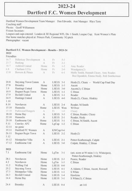 Here are the results with scorers and league table for the DFC Women's Development season just ended 2023-24