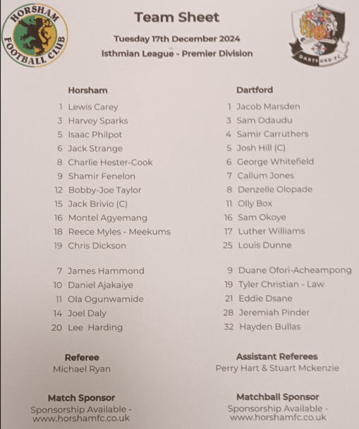 Re: Horsham v Dartford - Tue 17 Dec 2024