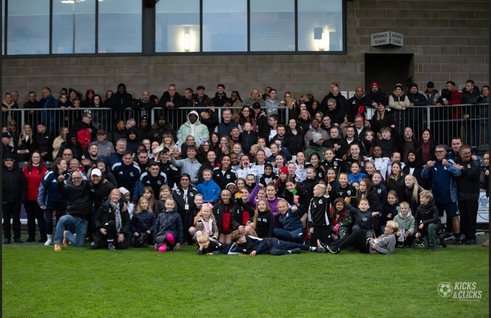 DARTFORD FC WOMEN TEAM CELEBRATE WITH A SECTION OF THE FANS AFTER THEIR GREAT WIN OVER FOREST GREEN ROVERS IN THE 1ST ROUND OF THE ADOBE WOMEN'S FA CUP