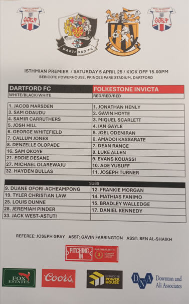 Re: Dartford v Folkestone Invicta Sat 5 Apr 2025