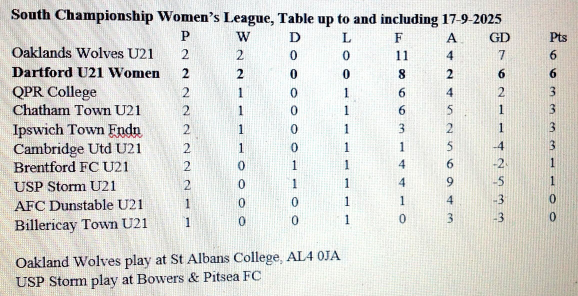 Dartford FC Girls/Women's U21 in the League Cup Round 1 home to Oxford Procision.