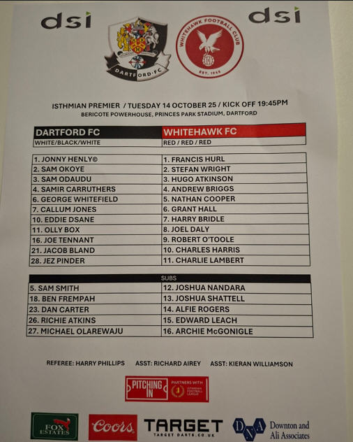Re: Dartford v Whitehawk Tue 14 Oct 2025