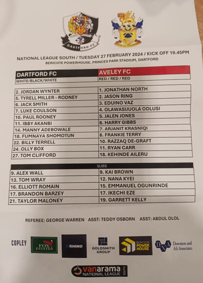 Re: Dartford v Aveley Sat 10 Feb 2024