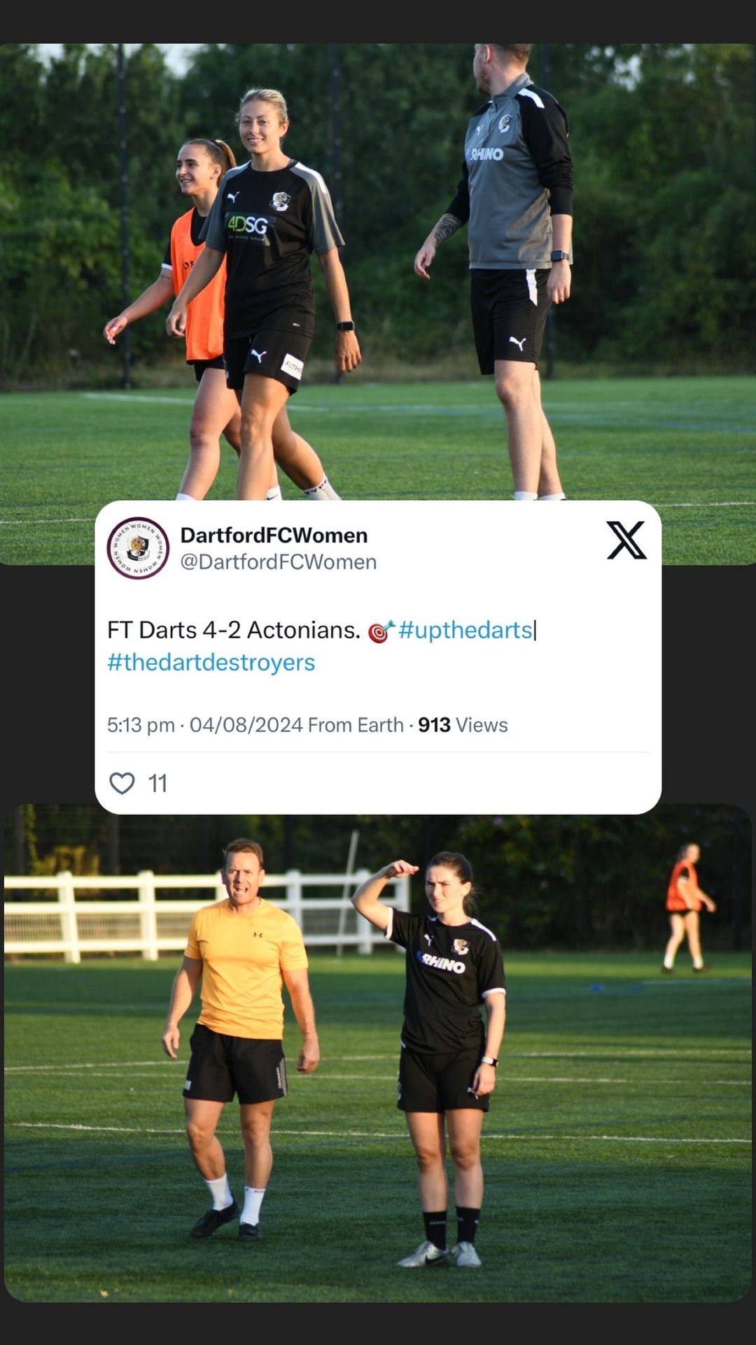 This was another good game the Darts’ to be involved in and against 4th-tier side Actonians, they not only matched their north London opponents and fairly tore them apart in the first-half. Leading 2-0 at half-time Darts extended their lead to 4-0, when amid many changes of personnel for the Darts, Actonians nearly stunned us after pulling two goals back, but when a third seemed likely Cerys in goal replacing Jade for her first Dartford appearance, stood up really well in a one-on-one situation and did enough to make the striker blast it way over the bar.