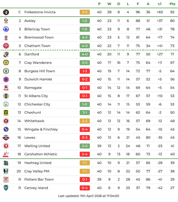 Dartford v Cheshunt Sat 27 Sep 2025 FT 2-0 Att 946
