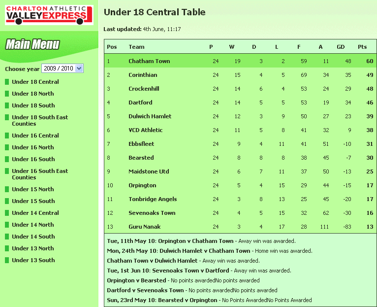 Table updated 3.5.2011 @ 07.55. The above table does not include any goals, appearances or bookings from the 2010 friendlies. Includes Ryman League Charity Shield and Kent Senior Cup matches