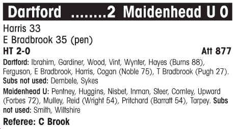 Dartford v Weston-s-Mare Sat 12 Sep 2015 FT 2-1 Att 802