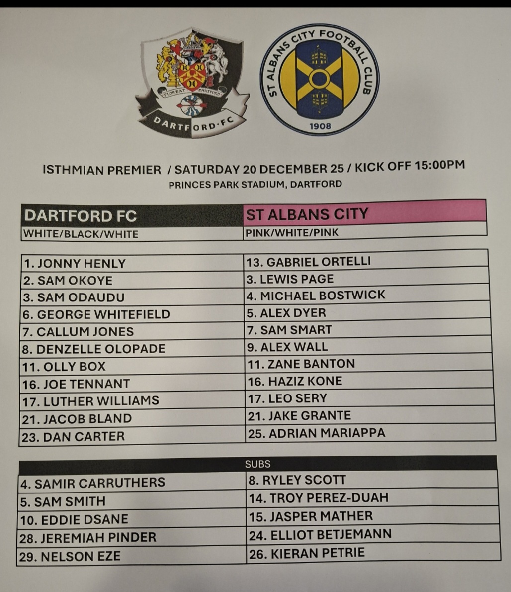 Re: Dartford v St Albans City Sat 20 Dec 2025