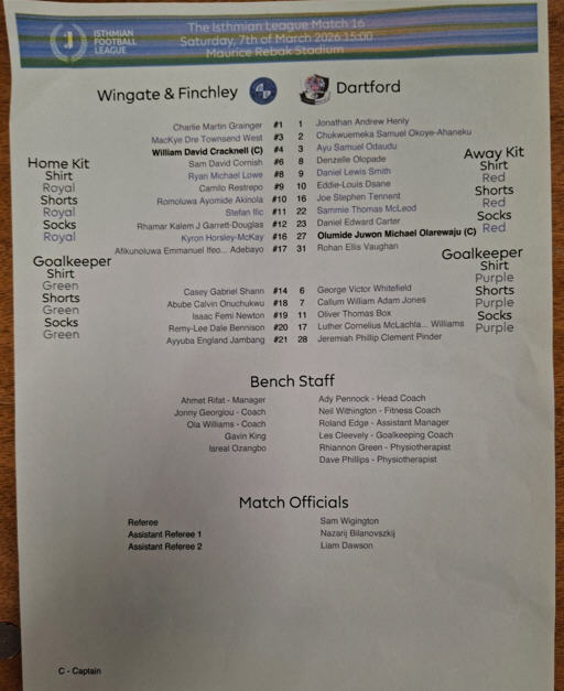 Re: Wingate & Finchley v Dartford Sat 7 Mar 2026