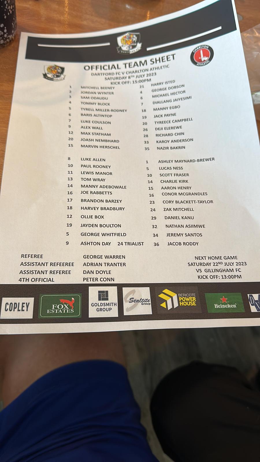 Pre season friendly Dartford v Charlton Sat 8 July 2023